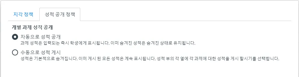 수동 성적 공개 옵션 적용 조건
