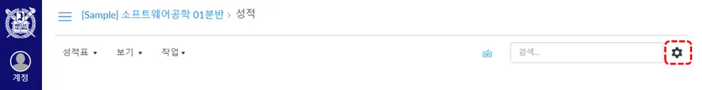 ‘성적’ 페이지 우측 상단의 [설정] 아이콘을 선택하면 과목 내 학습의 ‘지각 정책’ 또는 ‘성적 공개 정책’을 적용할 수 있습니다.