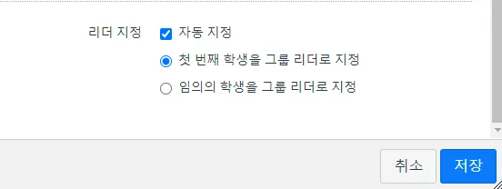 '임의의 학생을 그룹 리더로 지정' : 이 옵션은 그룹 내 멤버 중 무작위로 선택하여 리더로 지정합니다.