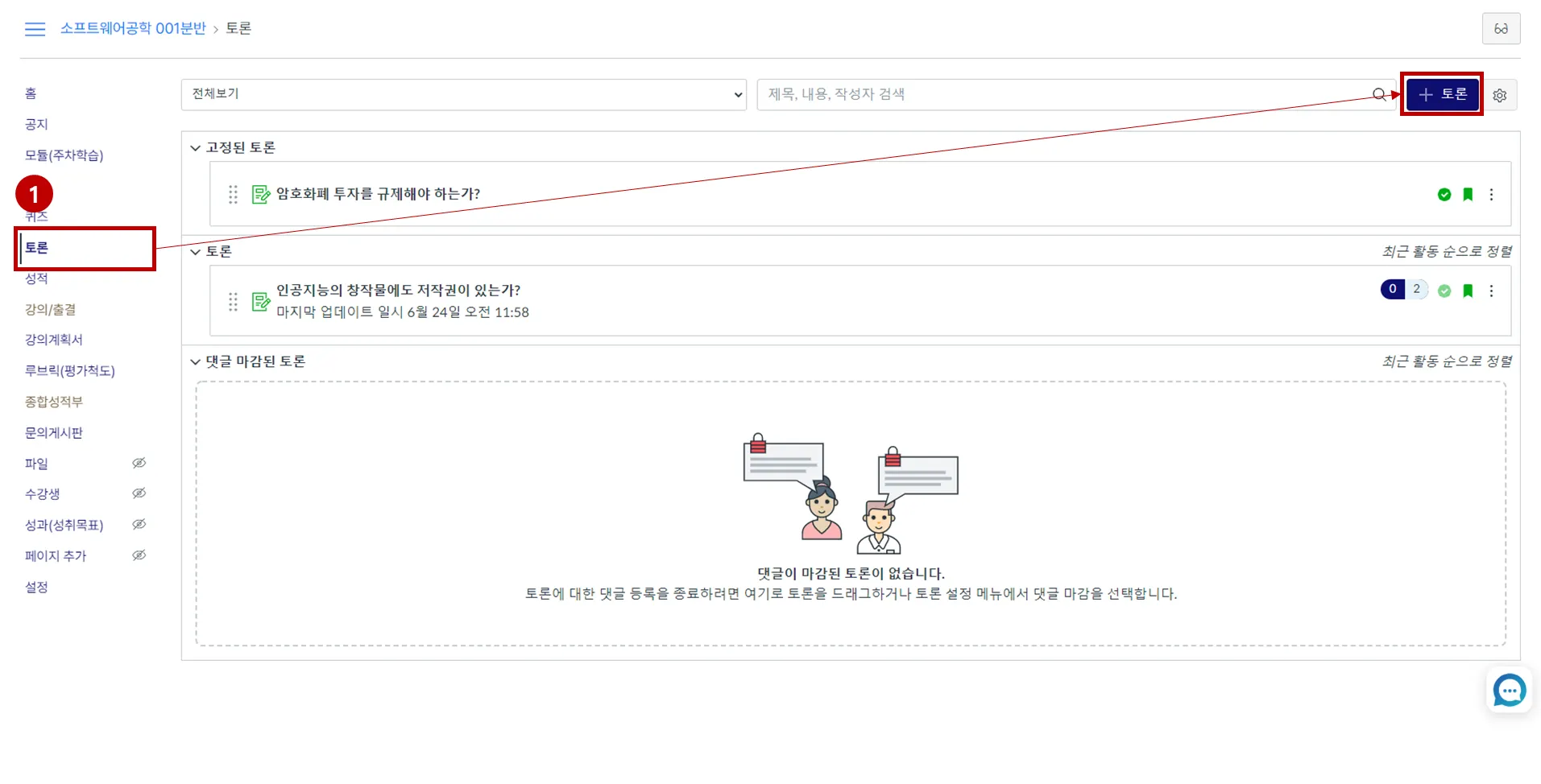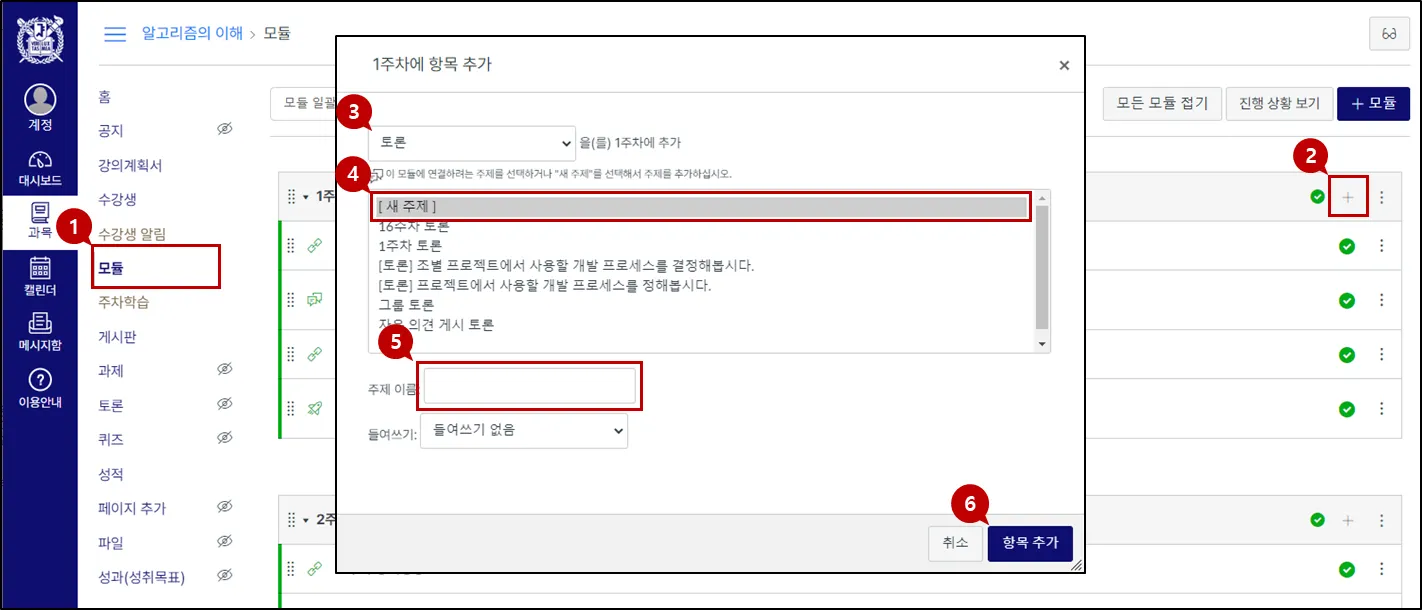 1-1. [모듈(주차학습)]에서 토론을 생성하는 방법