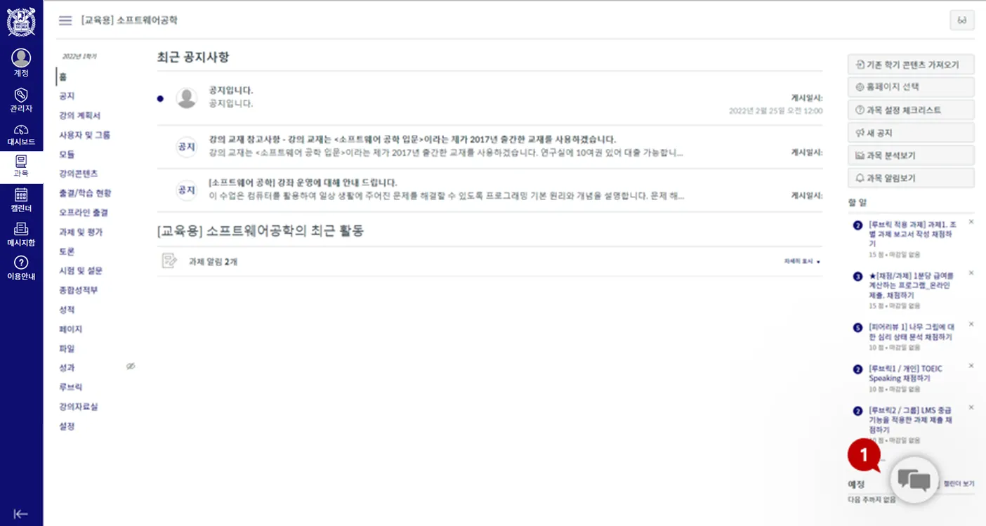 [참고] 과목에 접근하여 메시지 아이콘을 클릭하면 해당 과목의 채팅방으로 이동한 채로 채팅 팝업이 생성됩니다.