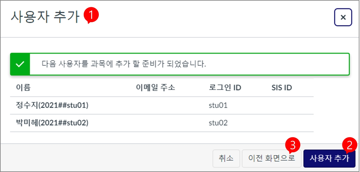 ②추가할 준비가 되면 하단의 [사용자 추가] 버튼[2]을 누르십시오.