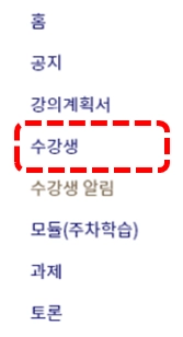 과목 메뉴에서 ‘수강생’을 눌러 이동합니다.