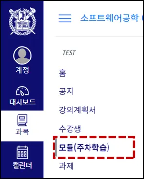 과목 메뉴의 모듈(주차학습)을 눌러 이동합니다.