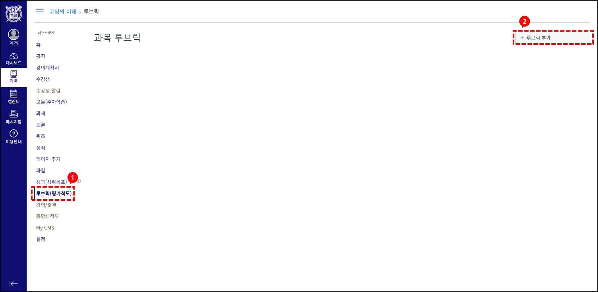 ① 과목 메뉴에서 [루브릭(평가척도)]메뉴를 클릭합니다.