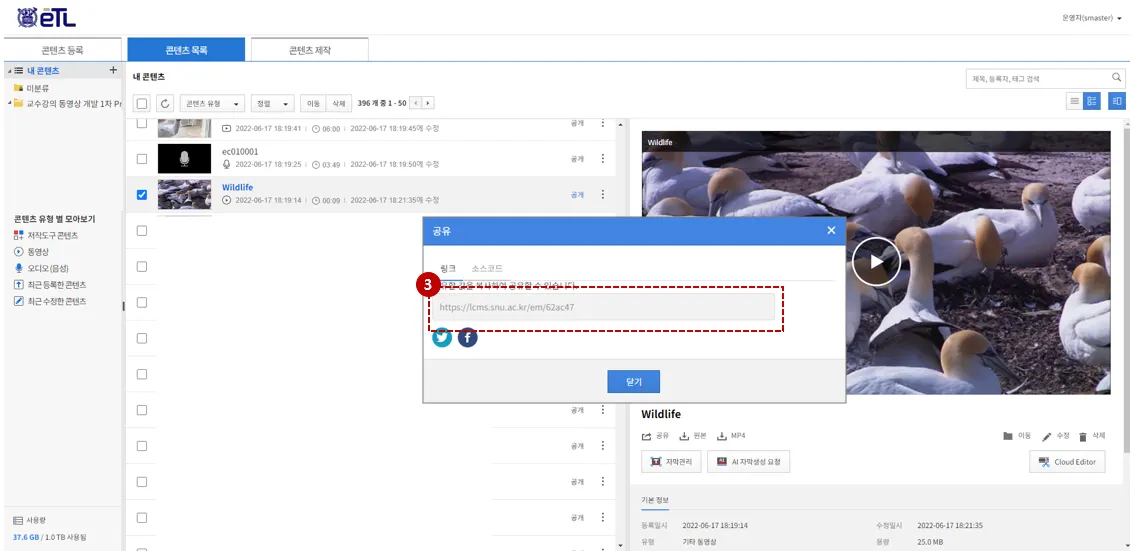 1-3. 콘텐츠 공유창이 뜨면 링크를 복사합니다.