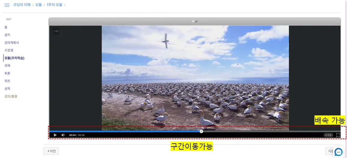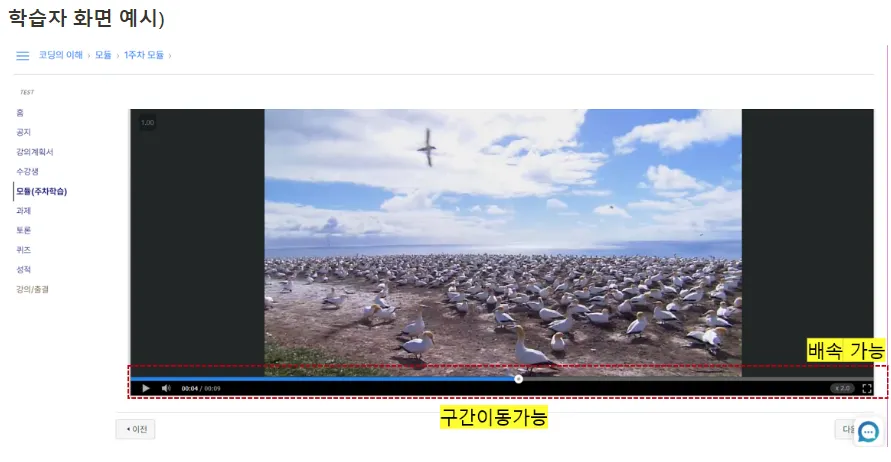 Q. 대면 수업에 출석한 학생들을 위한 복습용 영상을 업로드하고 싶습니다. (강의 재생 시 학습자가 재생 구간을 자유롭게 이동하도록 설정하고 싶습니다.)