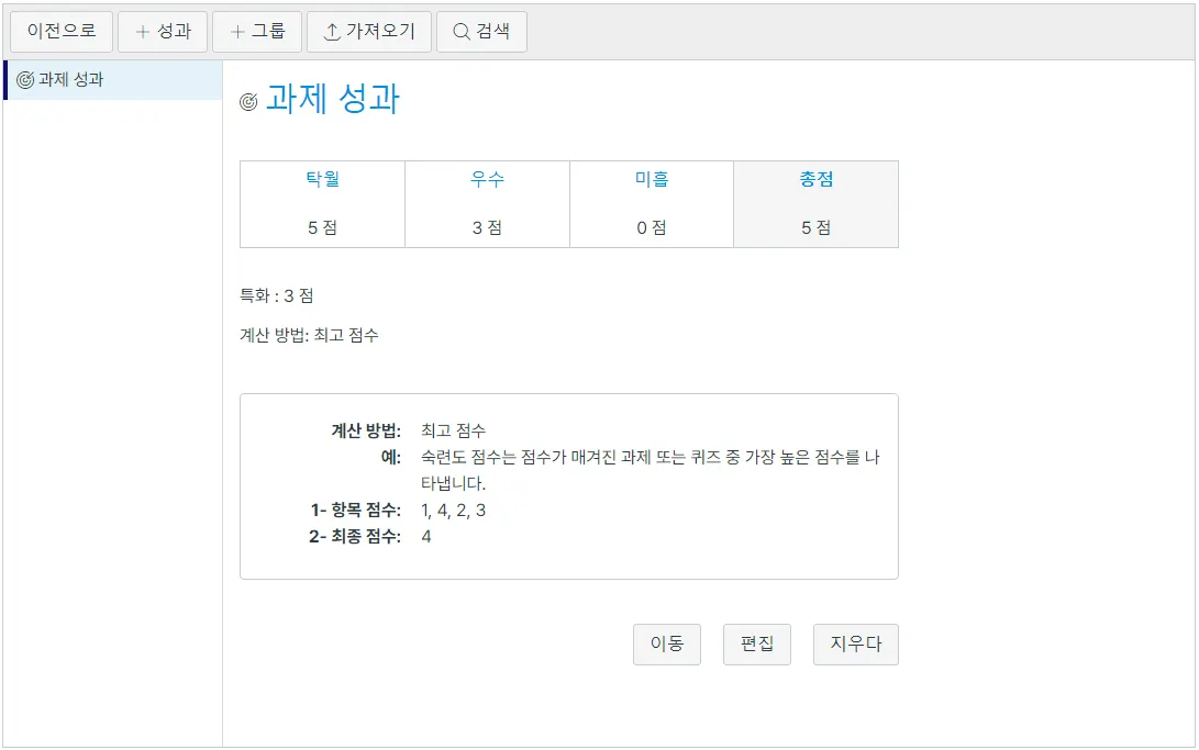 과목에서 성과 목표 제시 및 평가를 위한 새로운 성과를 만들 수 있습니다.