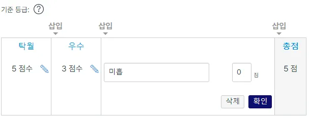 추가 기준 등급을 추가하려면 [삽입]을 눌러 추가하십시오.