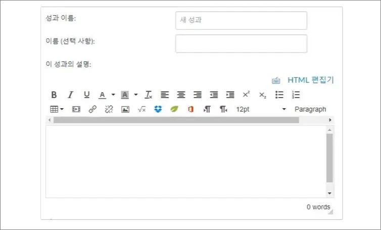 편집기를 이용하여 이 성과에 대한 설명을 입력 할 수도 있습니다.