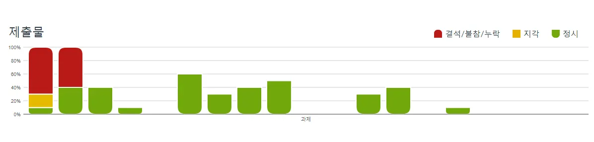 제출 그래프는 학생의 각 과제 별 제출 상태를 보여줍니다.