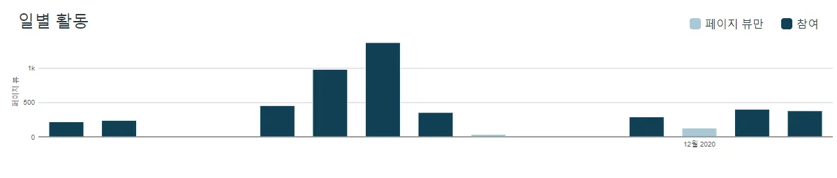 진한 파란색 막대는 코스에 대한 참여를 나타냅니다. 날짜가 페이지 뷰만 포함하는 경우 막대는 밝은 파란색으로만 표시됩니다.