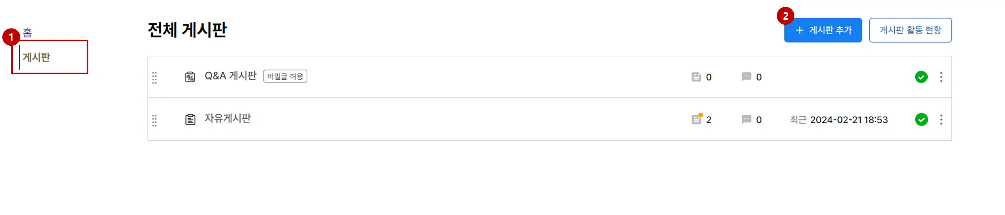 생성되는 리스트 중에서 [게시판] 버튼을 클릭합니다.
