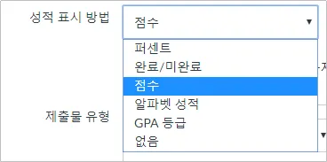 ※ 성적 표시 방법에서 '없음'을 선택하시면 학생이 과제를 제출할 수 없습니다.
