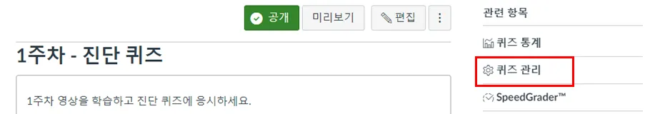한 명 이상의 학생에게 시도를 추가하려면 우측 관련 항목의 '퀴즈 관리'를 선택 하십시오.