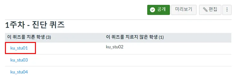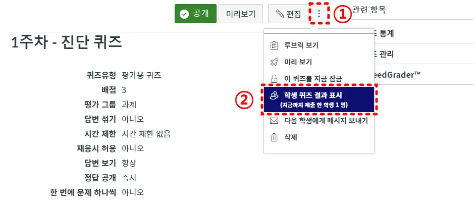 STEP 2. 학생 퀴즈 결과에서 추가 시도 허용 설정하기