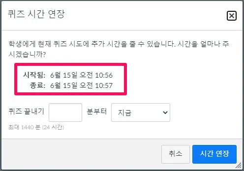 STEP 4. 퀴즈/시험 응시 중 추가 시간 연장