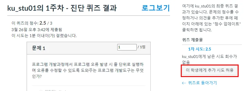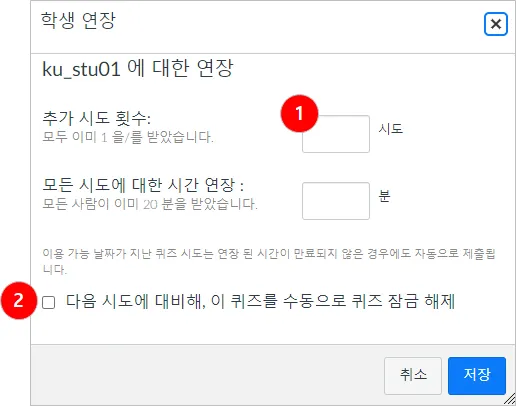 추가 시도 횟수[1]에 학생에게 주고자 하는 추가 시도 횟수를 입력하십시오.