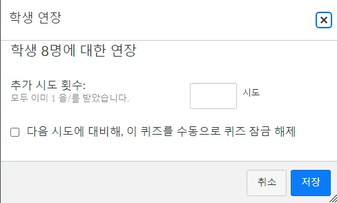 선택한 학생의 추가 시도 또는 시간 설정을 합니다.