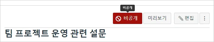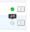 회색 아이콘 위에 마우스를 올려보면 ‘비공개’ 라는 확인 메시지가 표시됩니다.