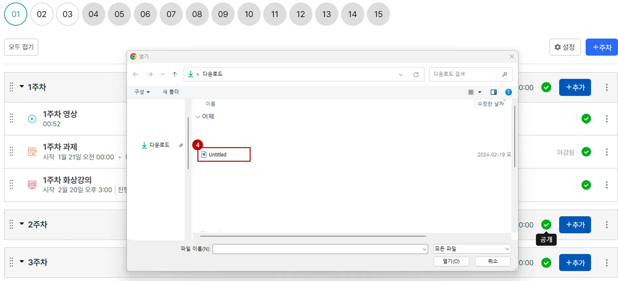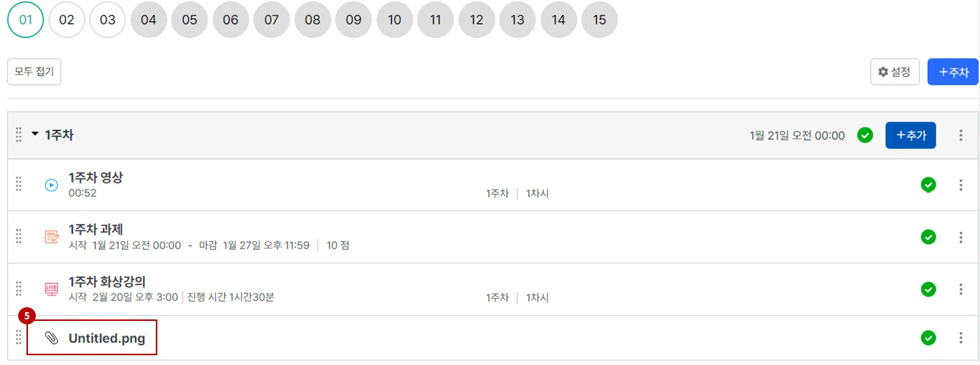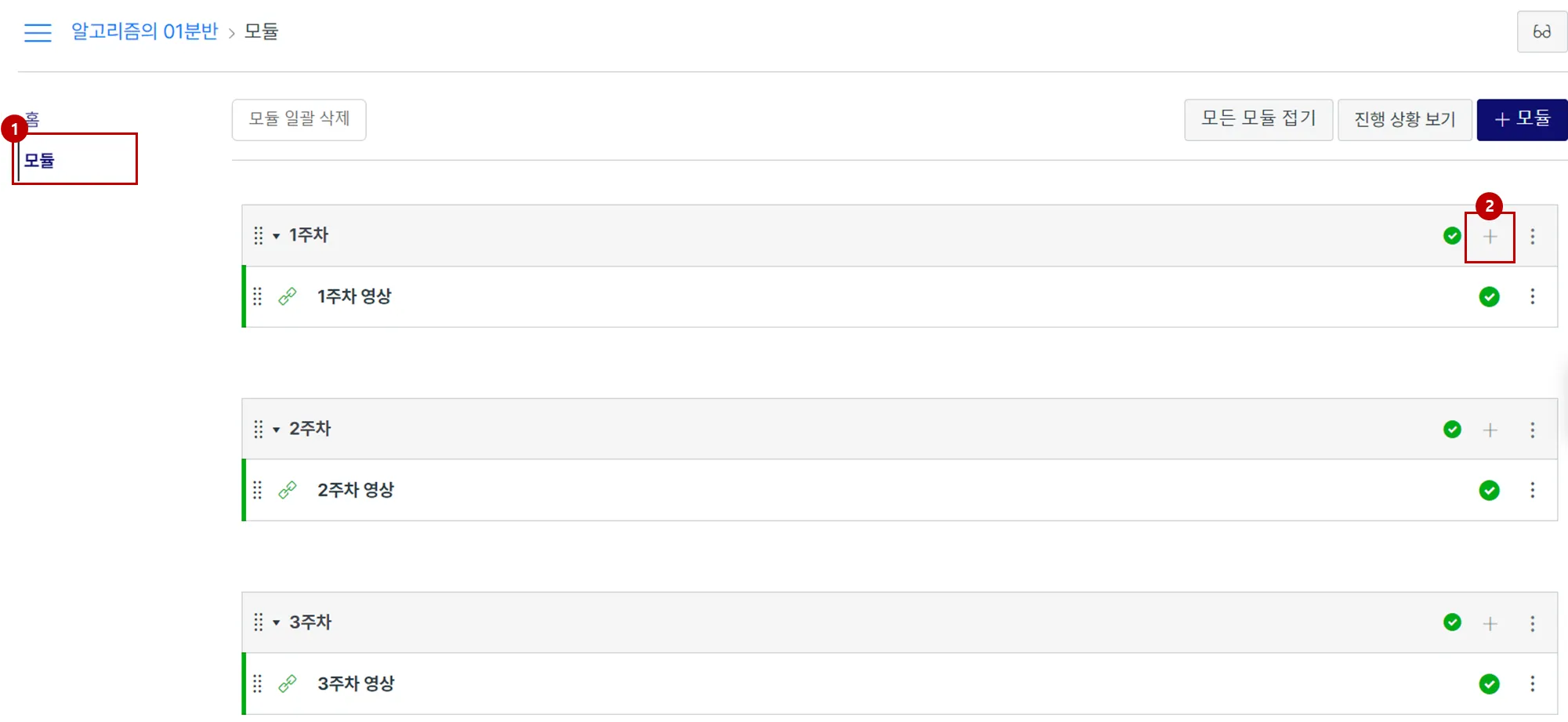 해당 주차의 [+ 추가] 버튼을 클릭합니다.