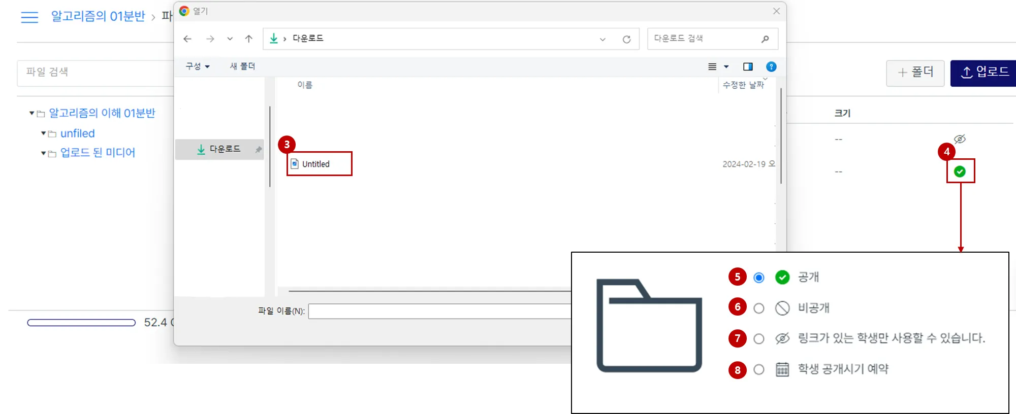 파일 메뉴는 학생들에게 비공개가 기본값입니다.