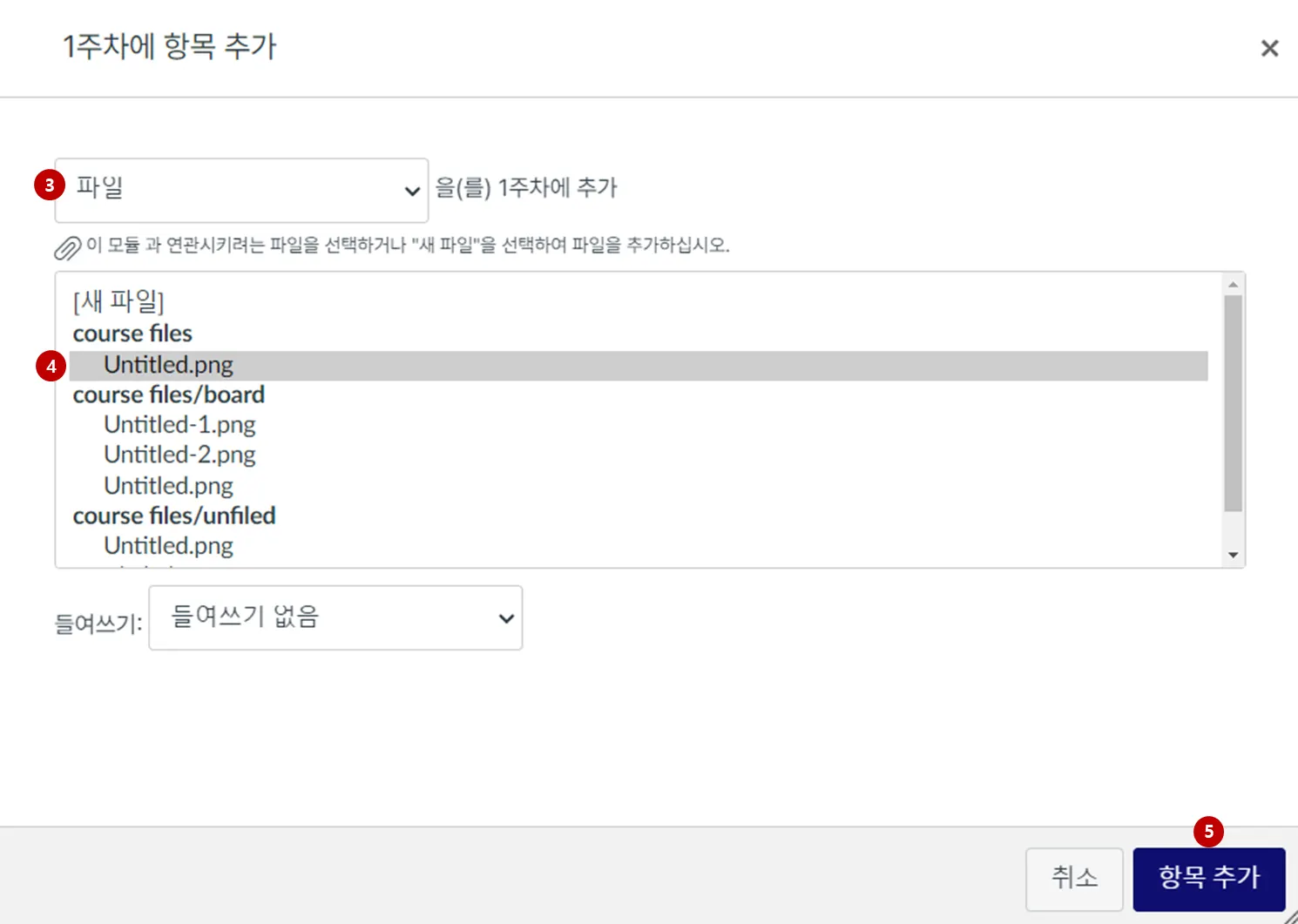 해당 주차의 [+ 추가] 버튼을 클릭합니다.