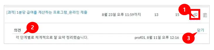 [1] 과제에 대한 피드백 의견이 추가된 경우 의견 아이콘이 표시됩니다 .