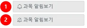 과목 홈에서 과목 알림 상태를 확인할 수 있습니다. [과목 알림보기] 버튼은 과목 알림이 활성화 된 경우[1] 또는 비활성화 된 경우[2] 로 표시됩니다.