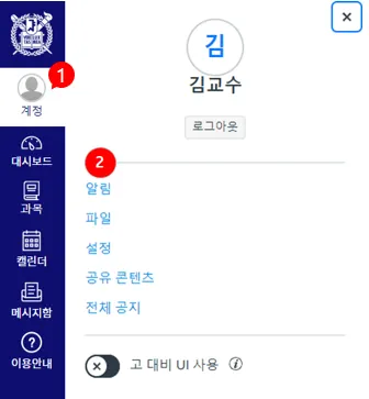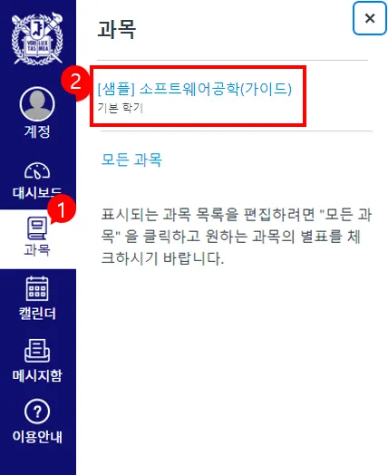 글로벌 탐색 메뉴에서 [과목[1] > 과목 이름[2]]을 선택합니다.