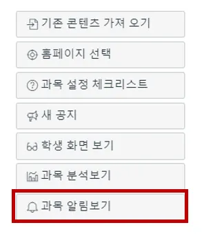 과목 홈 우측 상단의 [과목 알림보기] 버튼을 눌러 과목 알림 보기 페이지로 이동합니다.