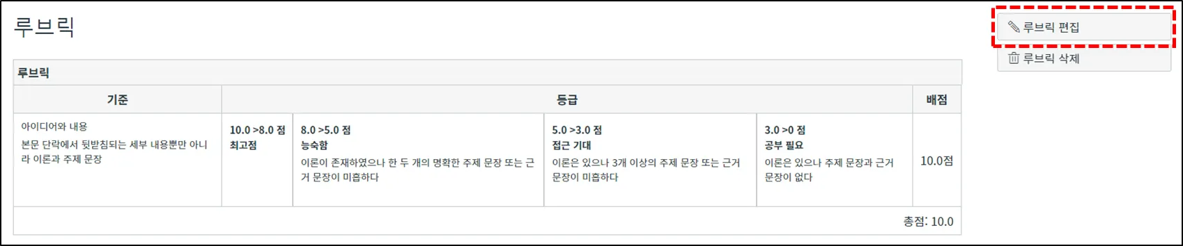루브릭을 편집하려면 해당 루브릭 우측 상단의 루브릭 편집 을 선택합니다.