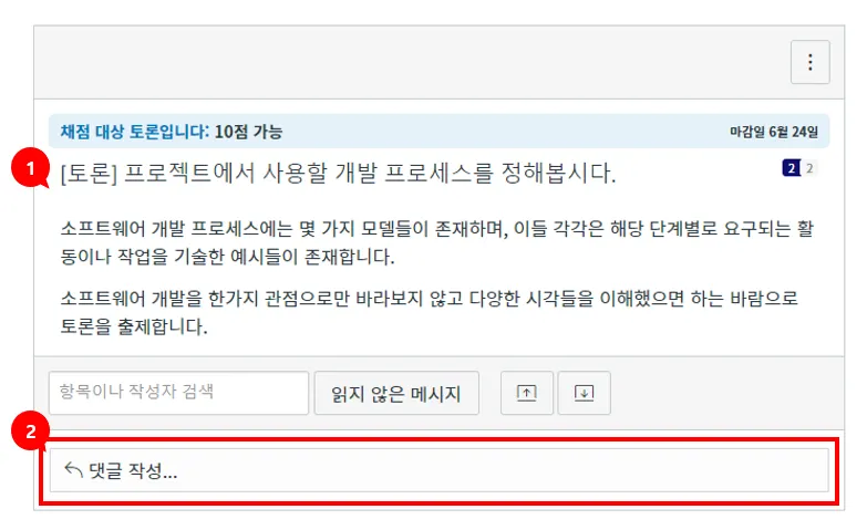 읽지 않은 메세지가 있는 토론과 과제 토론을 선택적으로 필터링[2] 할 수 있습니다.