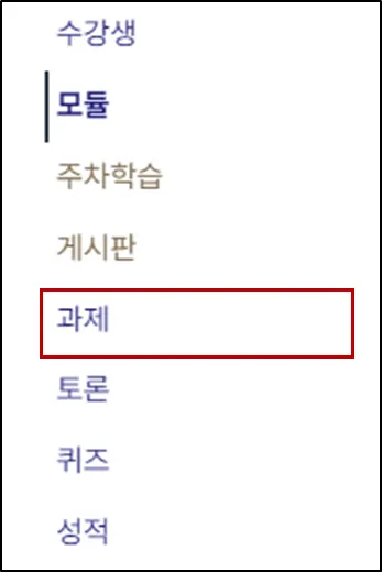 과목 화면에서 과제메뉴를 클릭하여 과제 페이지로 이동합니다.