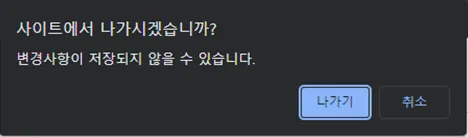 퀴즈를 푸는 도중 로그아웃 하게 되면 다음과 같이 경고 팝업 배너가 나타납니다.
