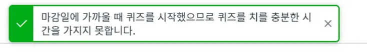 기한이 지난 퀴즈를 풀이하거나 마감이나 종료일자가 임박한 퀴즈를 풀이하는 경우, 퀴즈 시간 관리에 도움이 되는 경고 메시지를 표시합니다.