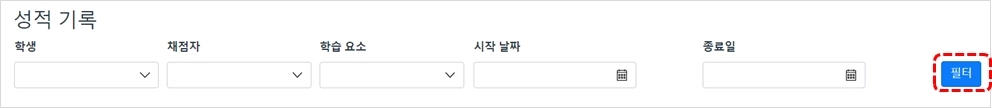 ‘성적 변경 내역’ 보기 페이지를 이용하여 과목 내 모든 성적표 상의 변경 내역을 볼 수 있습니다. 학생, 학년, 과제 및 날짜 별 성적 기록을 필터링 하는 옵션을 사용할 수 있습니다.