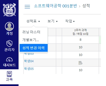 성적 변경 이력 열기