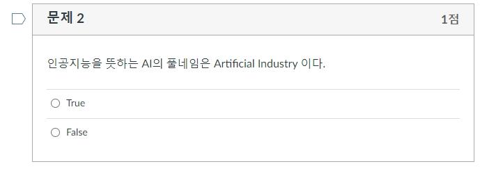학생에게 '참/거짓' 문제가 표시되는 방식