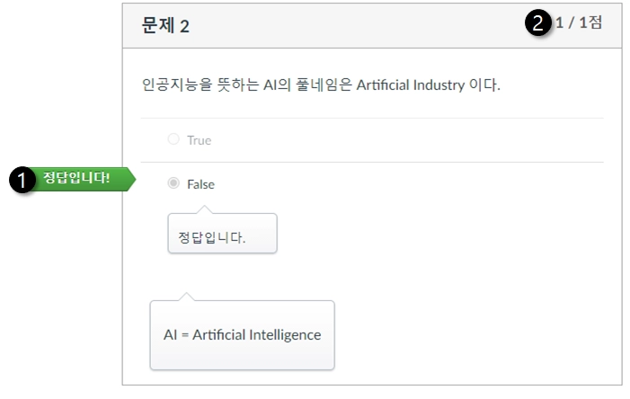 · 학생이 '참 /거짓'문제를 풀었을 경우 피드백 화면