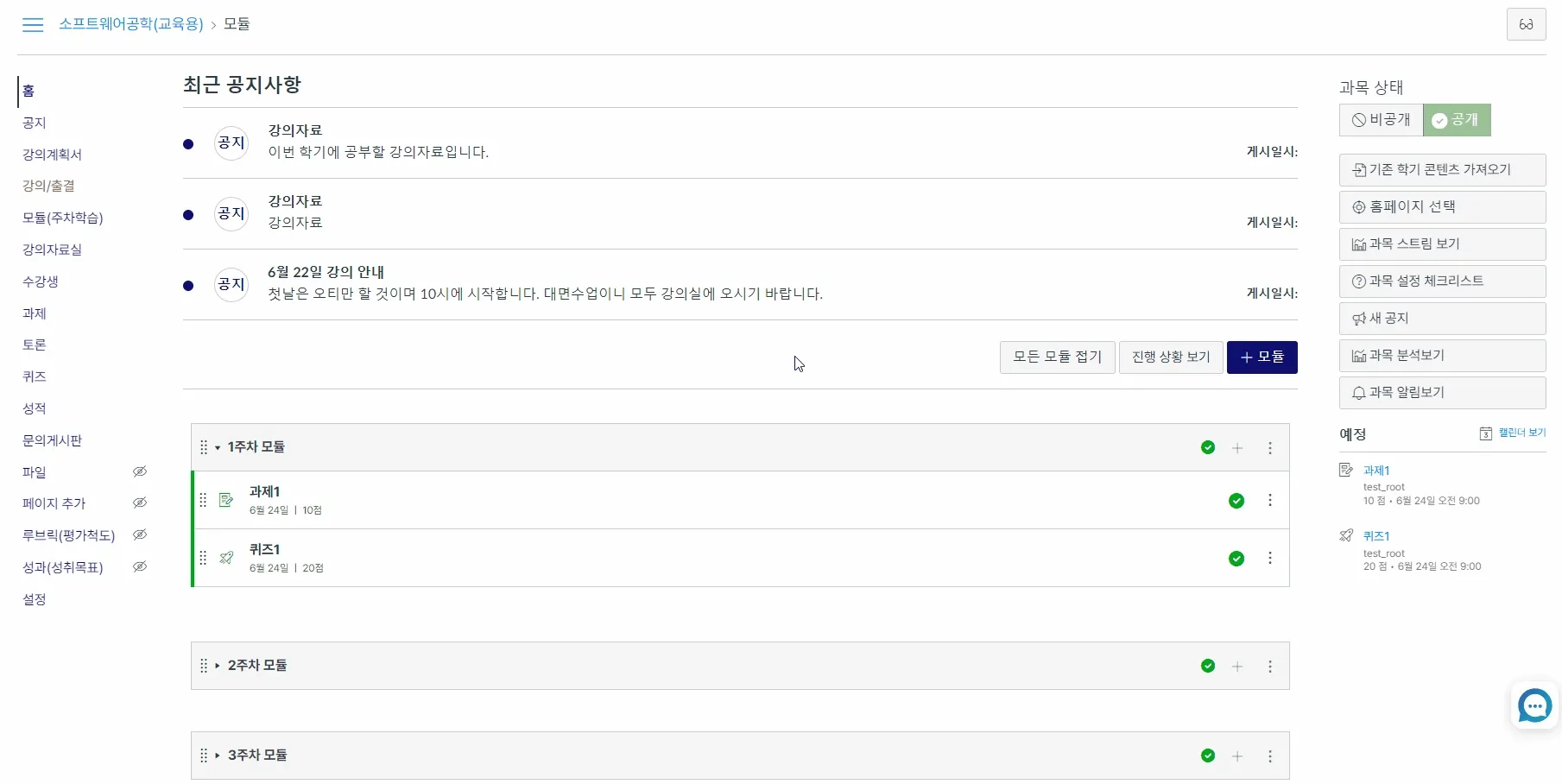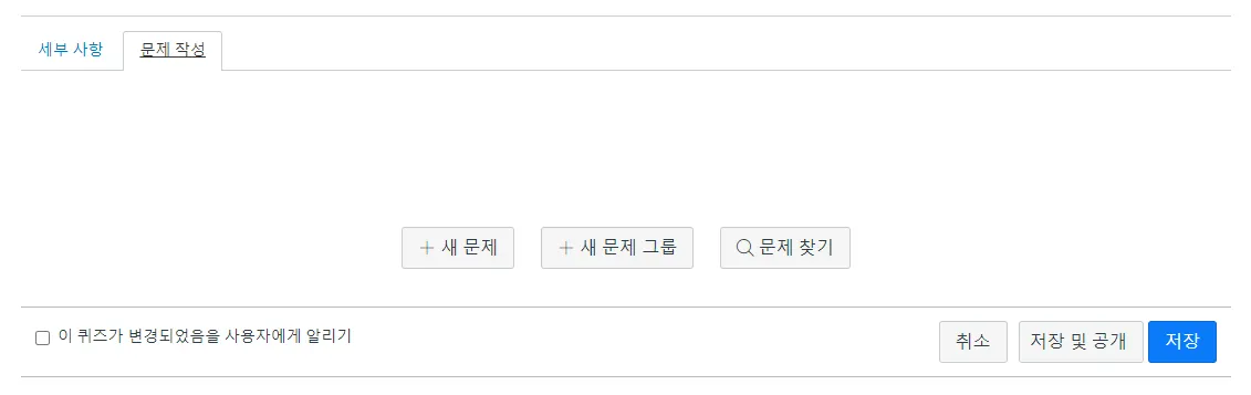 [참고 사항] : 퀴즈가 공개 된 후에도 퀴즈를 변경할 수 있지만 이미 퀴즈를 풀이한 학생에게는 변경 사항이 반영 전에 풀이되었으므로 성적에 영향을 줄 수 있습니다.