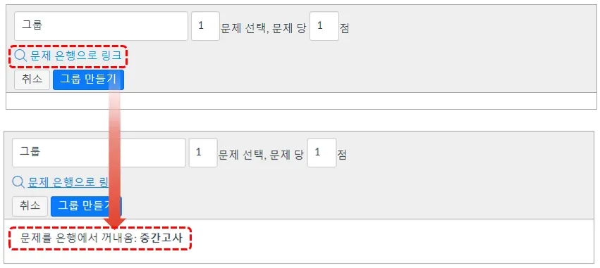 문제 은행에서 특정 문제를 선택적으로 가져와 문제 그룹에 추가할 수 있습니다.