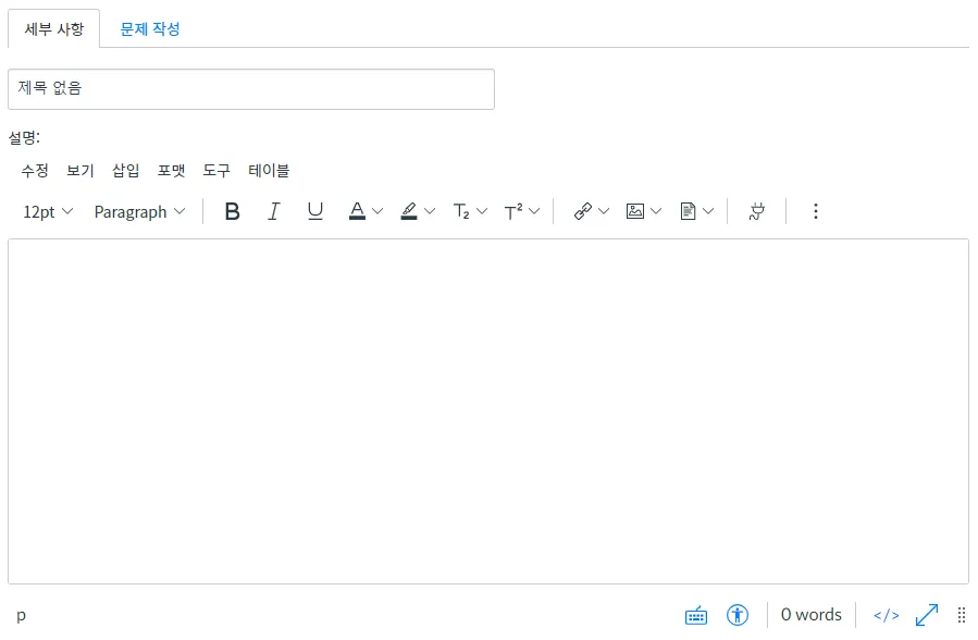 ‘세부 정보’ 탭에서 퀴즈 출제를 위해 필요한 정보를 입력합니다.