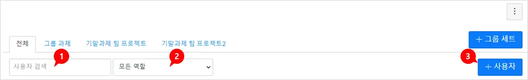 역할 별로 필터링 하려면 역할 드롭 다운 메뉴[2]를 선택하여 학생, 교수, 조교 등을 구분하여 필터링 합니다.
