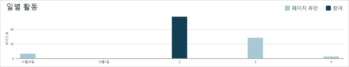 진한 파란색 막대는 코스에 대한 참여를 나타냅니다. 날짜가 페이지 뷰만 포함하는 경우, 막대는 밝은 파란색으로만 표시됩니다.