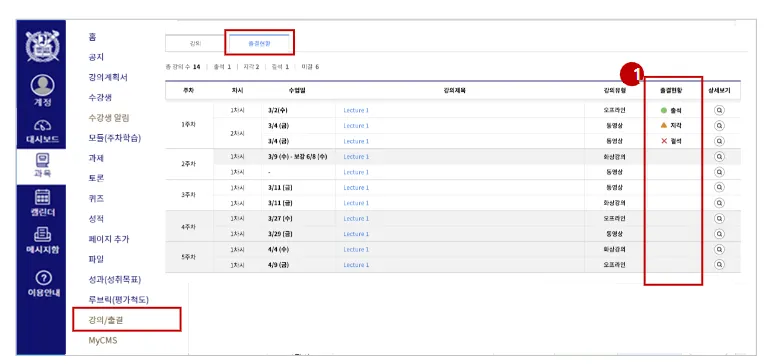 [강의/출결]의 ‘강의’탭에서 확인하기