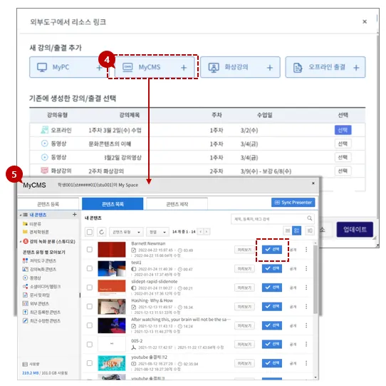 STEP 1. MyCMS에서 동영상 및 강의 자료 업로드하기