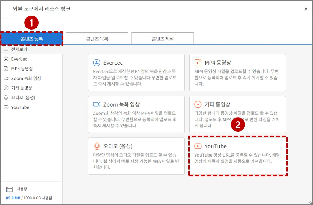 2-1. 콘텐츠 등록 탭을 선택합니다.