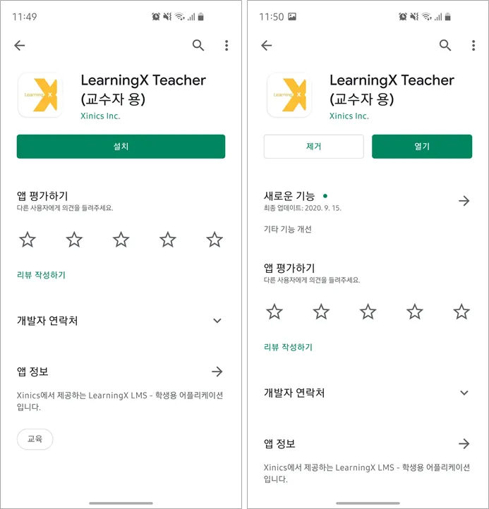 앱 명칭 : 'LearningX Teacher (교수자용)' 앱 검색 후 설치