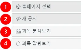 과목 홈 우측 상단의 ‘과목 도구’를 통해 과목 홈 페이지를 관리하고 과목 관련 유용한 링크를 확인할 수 있습니다.